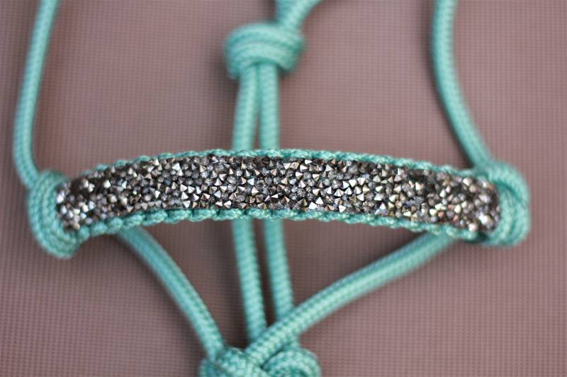 Gave handgemaakte luxe glitter touwhalsters in allerlei kleuren en op maat gemaakt. De glitter zijn heel stevig vast gemaakt op de neusband dus ze zullen er niet zomaar af vallen.